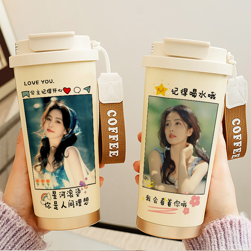 白鹿应援周边杯子陶瓷保温杯女高颜值水杯便携办公室咖啡吸管水杯
