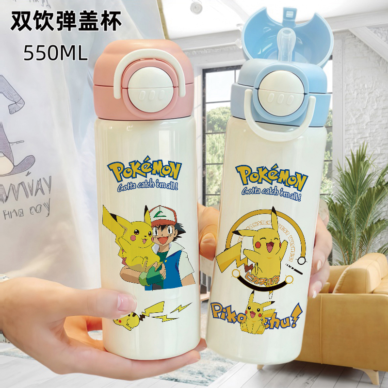 皮卡丘联名周边杯子儿童双饮杯保温杯316吸管杯学生上学专用水杯