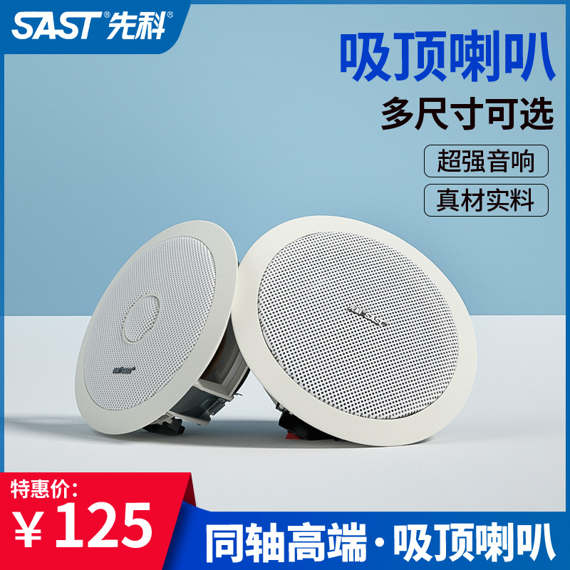 SAST/先科 S4-6同轴吊顶理发店吸顶嵌入式天花房顶背景音乐棚顶室内重低音音箱餐厅超市定压喇叭公共广播音响