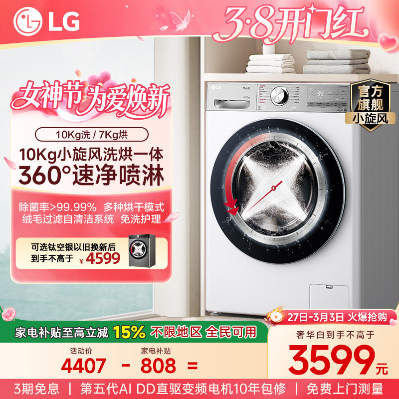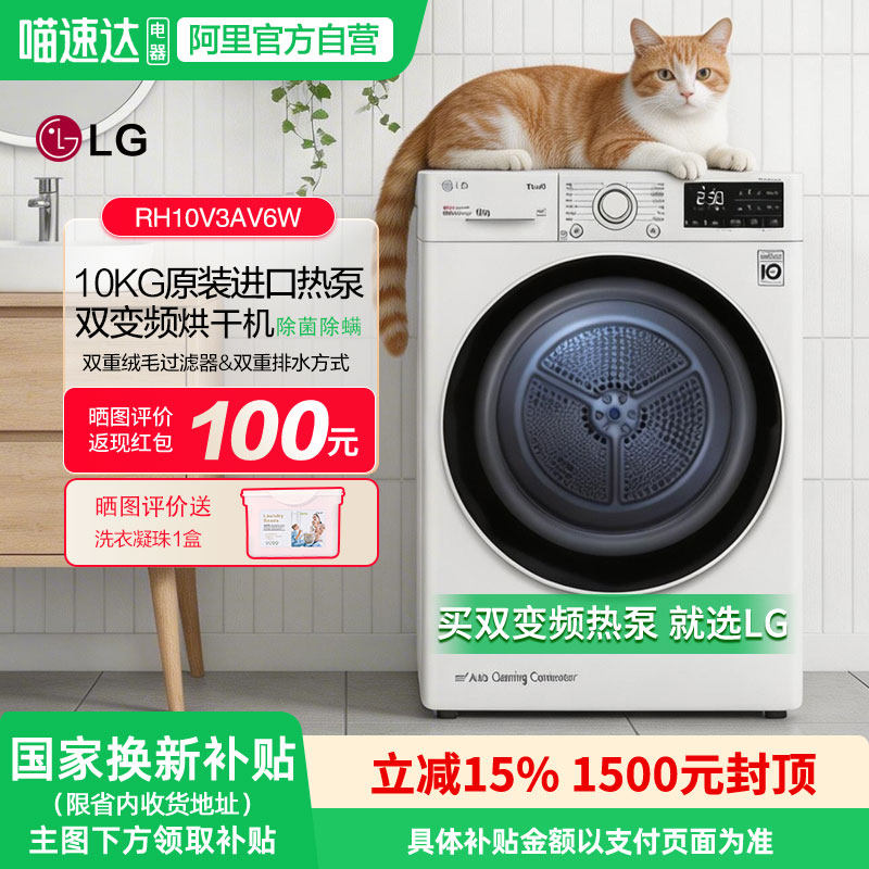 【政府补贴15%】原装整机进口LG 10Kg除菌螨烘干机干衣RH10V3AV4W