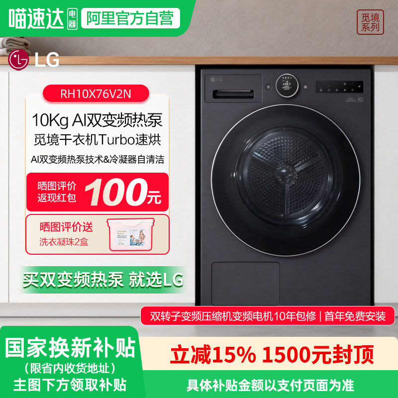 LG觅境10公斤干衣机双变频热泵智能烘干机除菌RH10X76V2N/EN 151