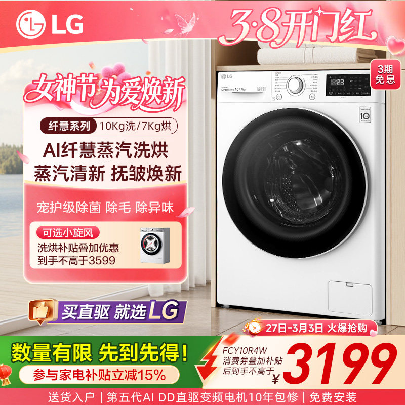 [换新补贴]LG洗烘一体机10Kg纤慧全自动家用洗衣机带烘干10R4W