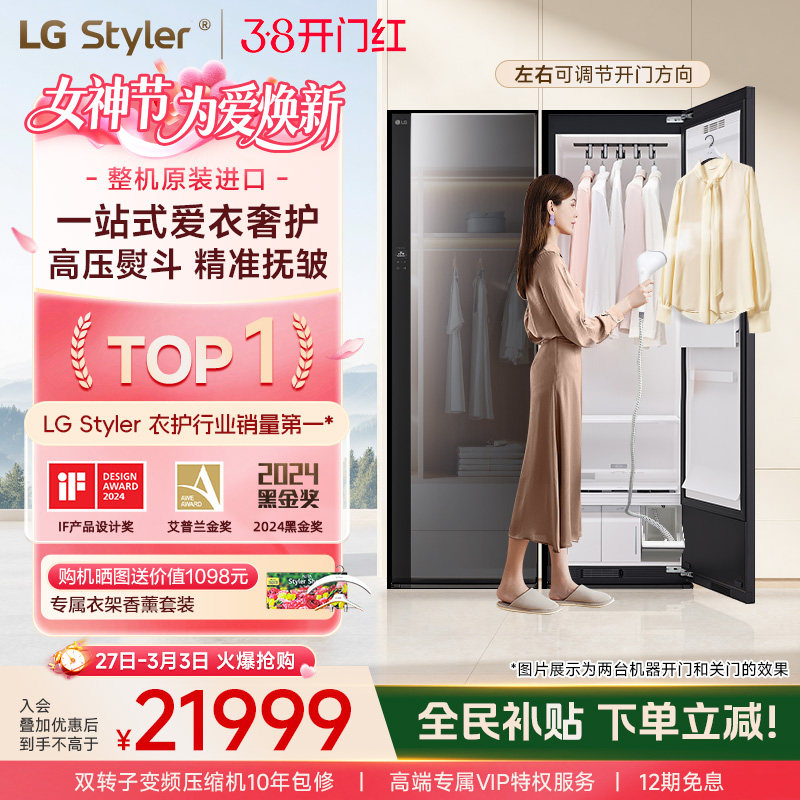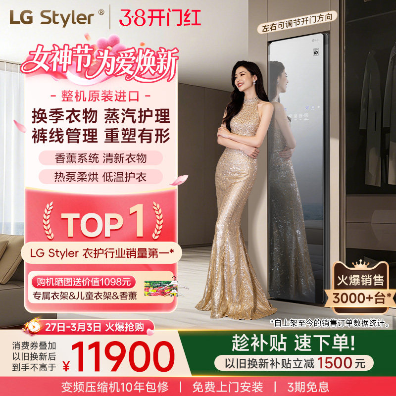 【原装进口换新补贴】LG衣物护理机热泵烘干蒸汽熨斗干洗机Styler