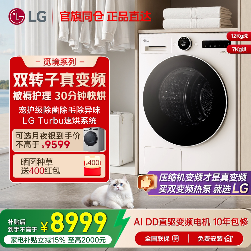 【觅境X400】LG洗烘一体机12Kg全自动滚筒烘干智能洗衣12D2CE