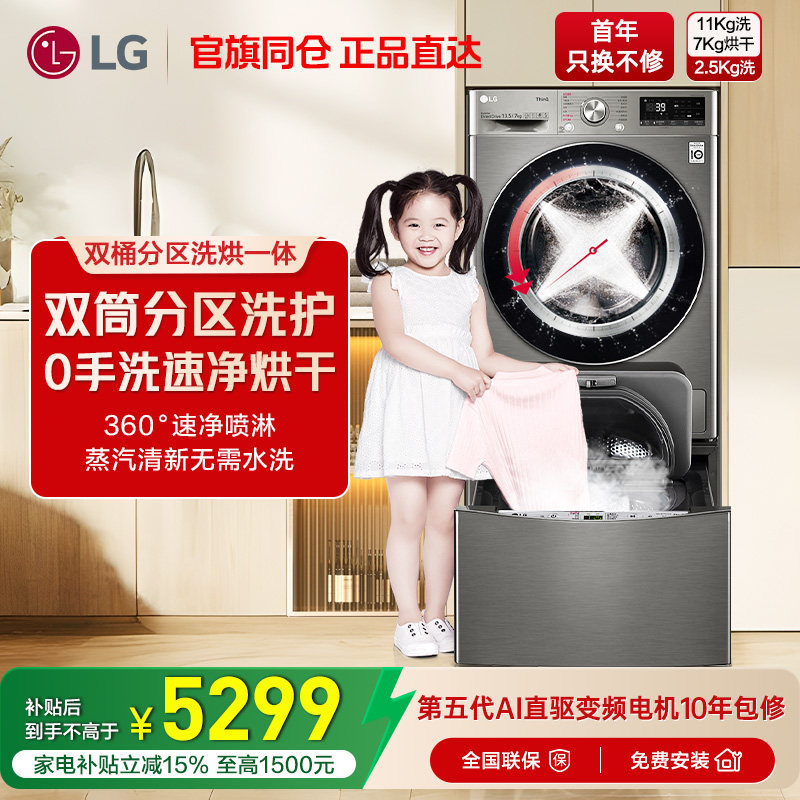 LG洗衣机双擎分区洗烘一体波轮全自动滚筒变频家用烘干LG FD13PWW