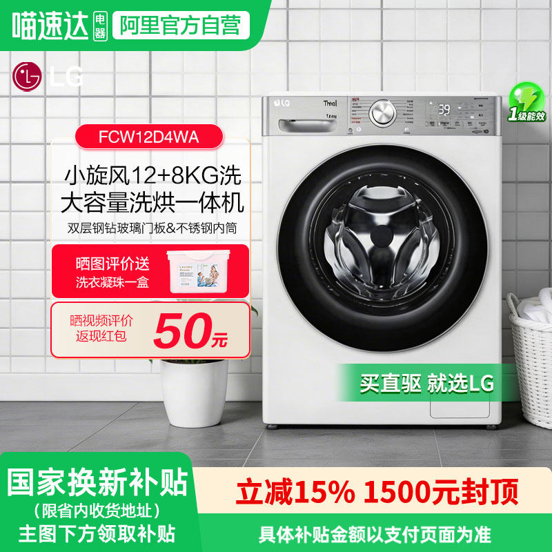 LG小旋风12+8KG全自动滚筒洗衣机带烘干一体家用FCW12D4WA 151