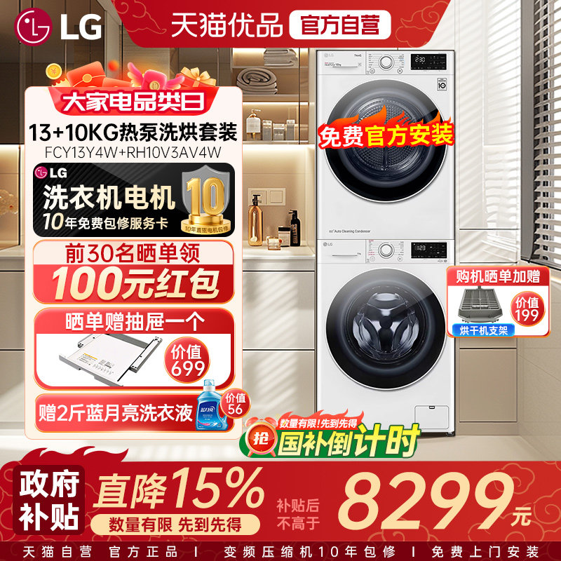 【全民补贴】LG洗烘套装热泵烘干变频洗衣机FCW13Y4P+RH10V9PV2W