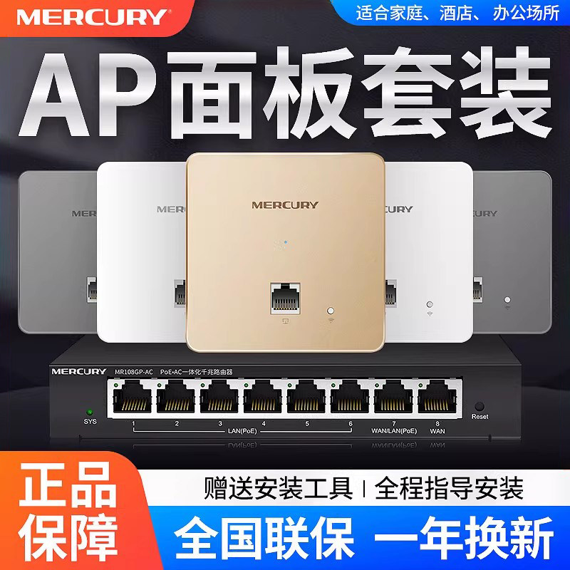 水星无线ap面板套装全屋wifi7家用别墅酒店8 6型入墙式路由器插座双频千兆口poe.ac一体机IPTV家庭组网络覆盖