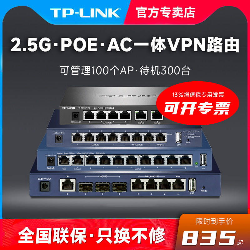 普联TP-LINK企业级路由器千兆万兆有线双WAN端口多网络宽带叠加无线AP管理覆盖商用办公室酒店公寓出租房