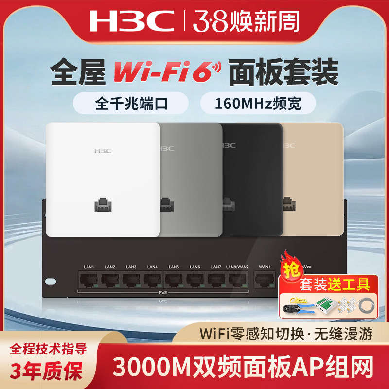 H3C新华三千兆AP路由器全屋套装覆盖吸顶无线ap面板千兆wifi6 86入墙3000M双频poe交换机AC双WAN口家用5G别墅