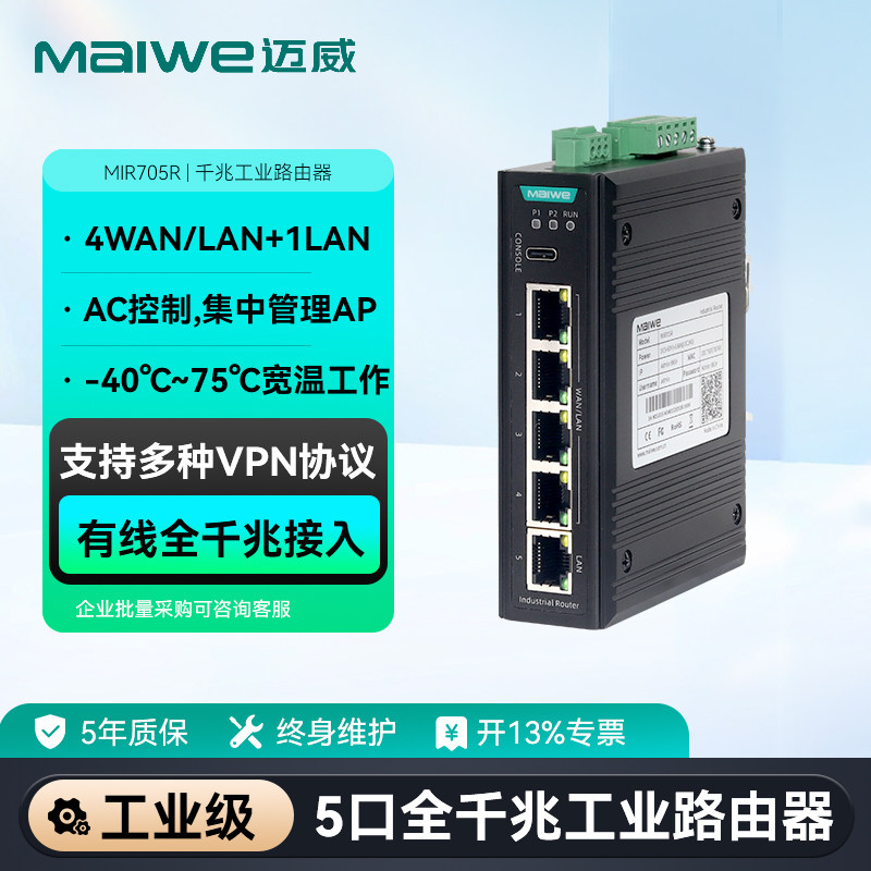 迈威 千兆5口有线工业路由器 AP管理AC控制卡轨式安装 MIR705R