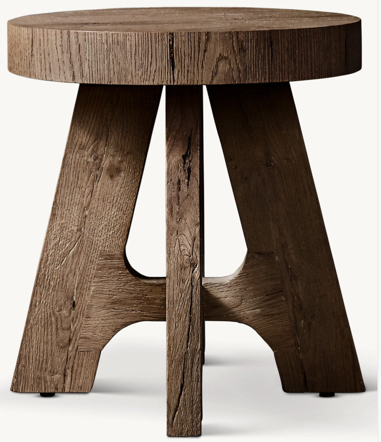 全实木做旧茶几美式乡村客厅圆形茶桌复古实木小户型个性民宿原木