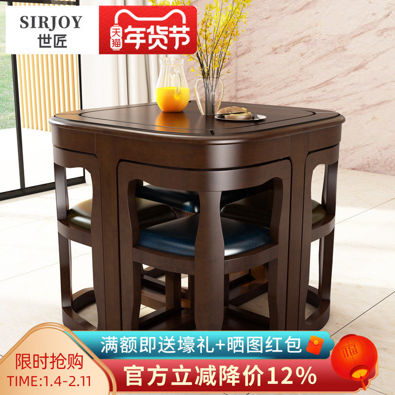 世匠美式乡村实木餐桌小户型家用大理石岩板饭桌一桌四椅阳台茶桌