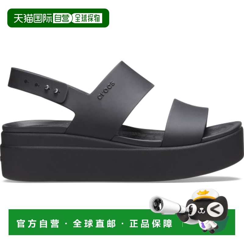 日本直邮Crocs卡骆驰 布鲁克林 皮革 厚底绑带 休闲凉鞋 女款 黑