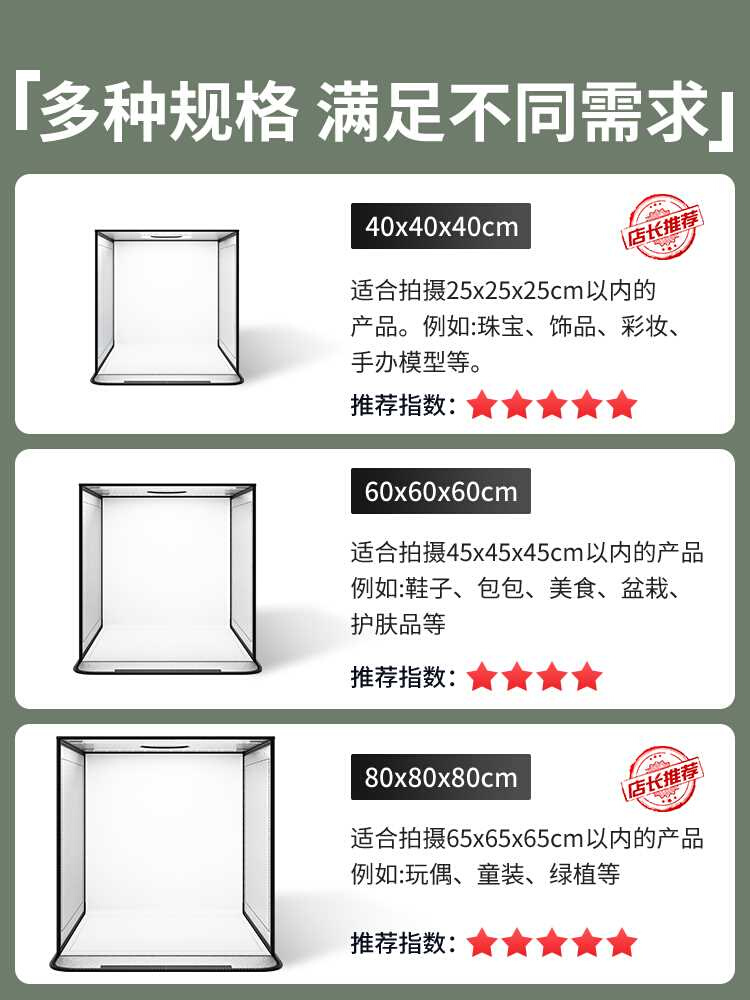 80CM摄影棚小型电商产品拍照柔光灯箱小影棚简易拍摄补光灯20CM简