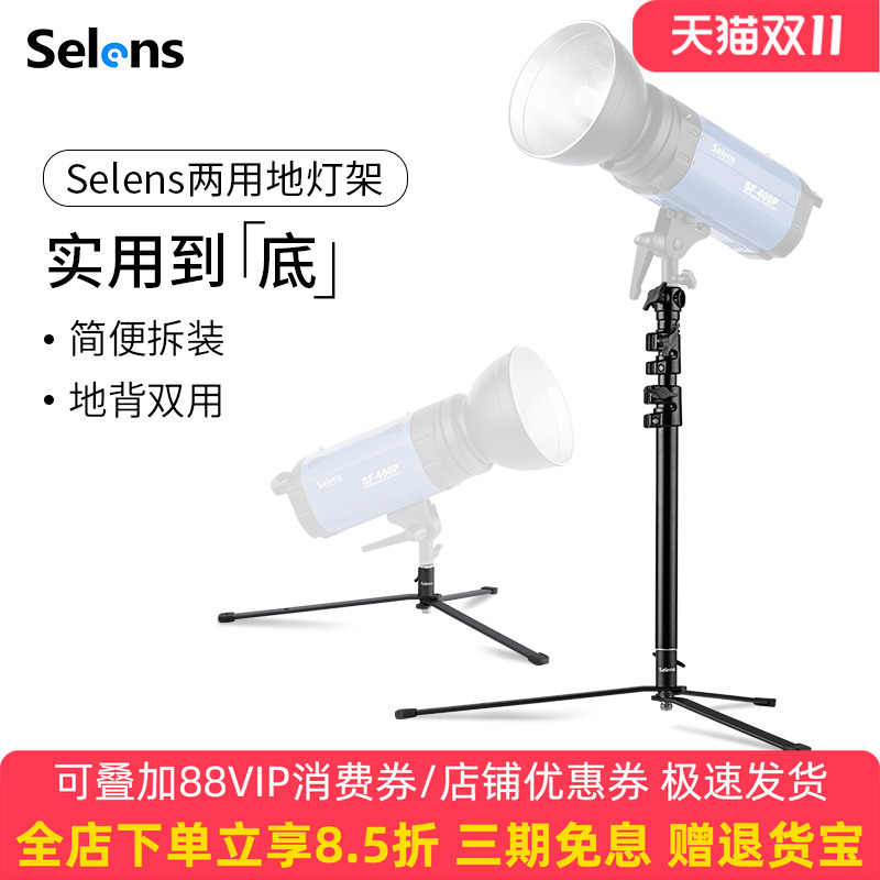 Selens/喜乐仕专业摄影地灯架影视影棚灯小型灯架闪光灯支架两用折叠地灯架照明地灯架户外拍照三脚架