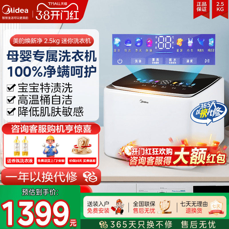 美的2.5kg婴儿洗衣机宝宝专用小型迷你全自动家用内衣内裤婴幼儿