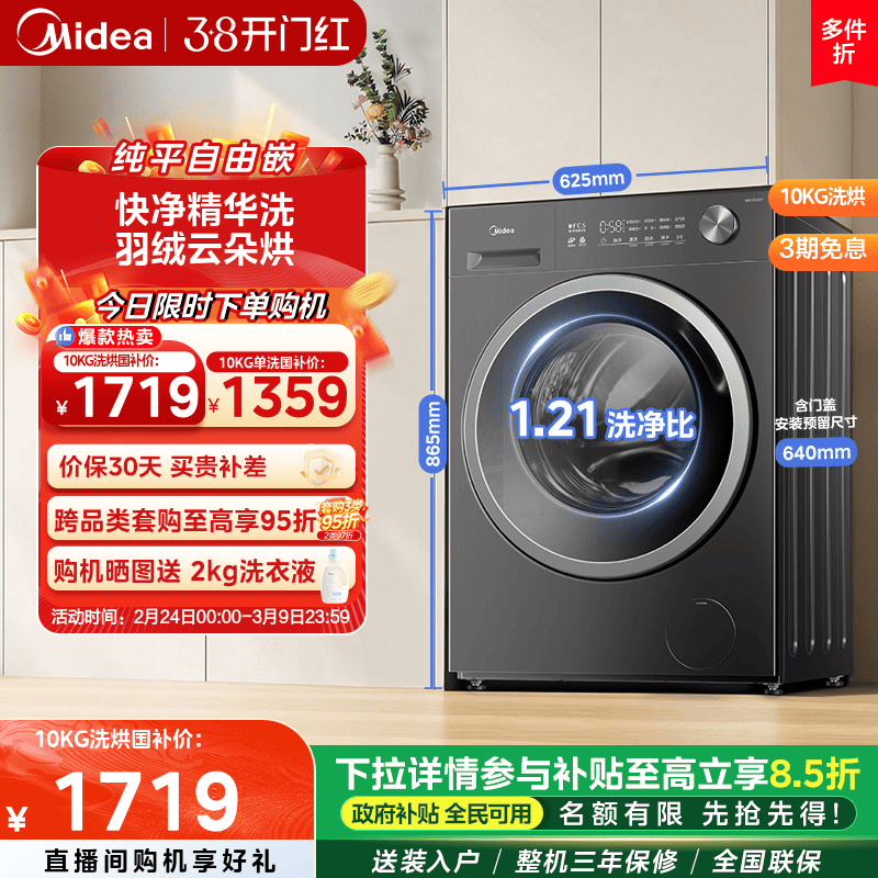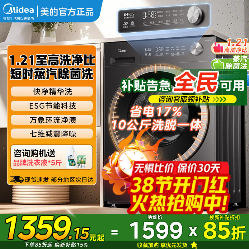 【全民补贴】美的10/12kg洗衣机全自动家用大容量滚筒洗烘脱一体