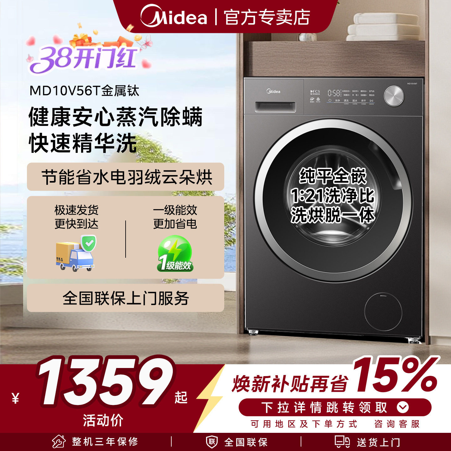 美的10kg纯平嵌家用全自动滚筒快净除菌洗脱烘一体洗衣机56T