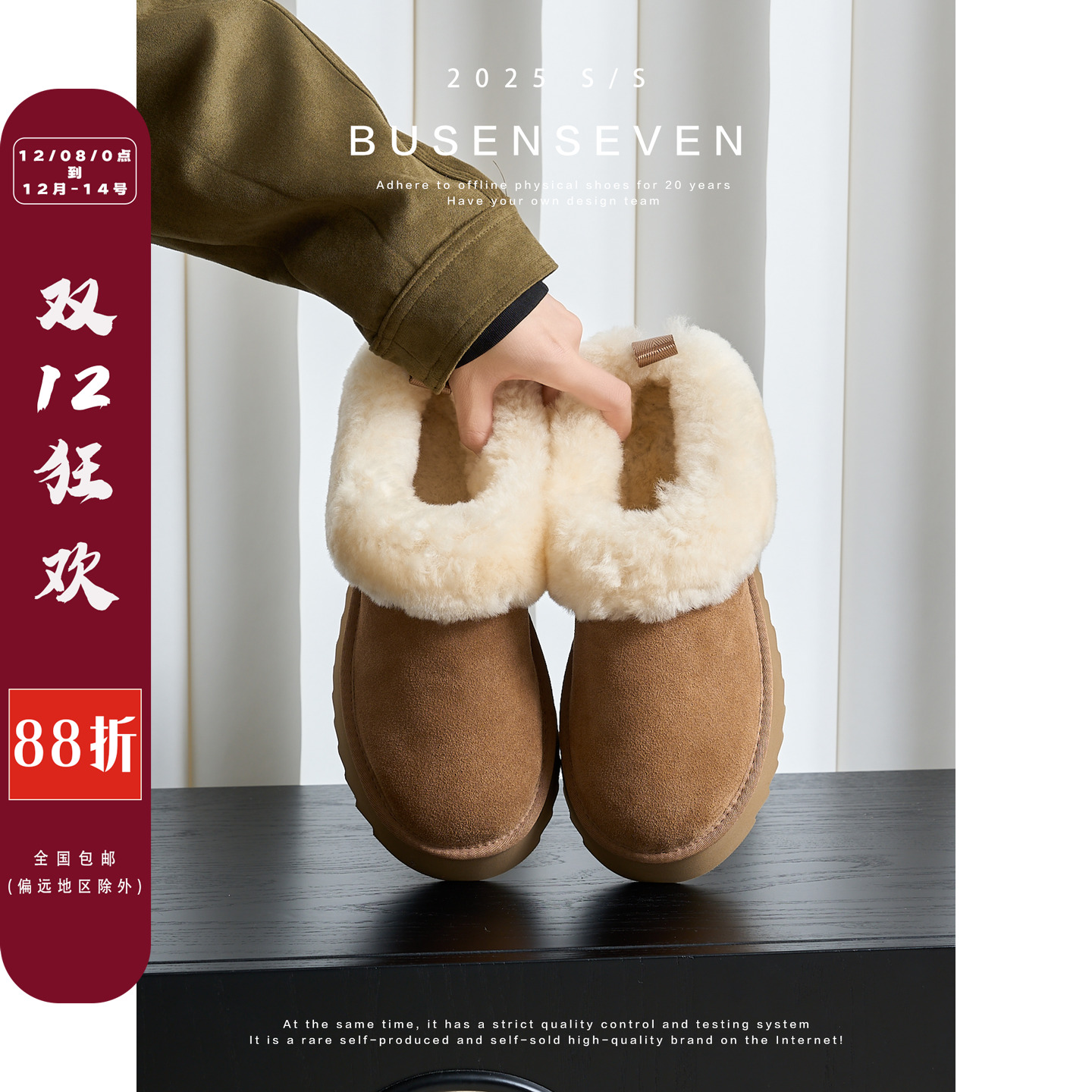 - 加绒平底靴