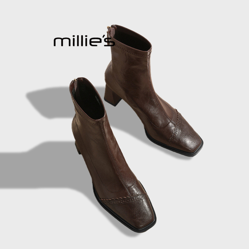 MILLIE'S/妙丽秋冬季新款高跟短靴女瘦瘦靴高级感小踝靴时尚单靴Z
