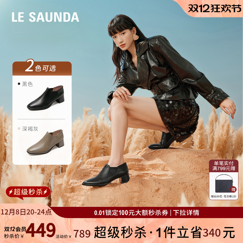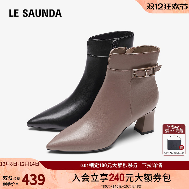 莱尔斯丹秋冬商场同款舒适通勤侧拉链尖头瘦瘦靴短靴女鞋4T69158