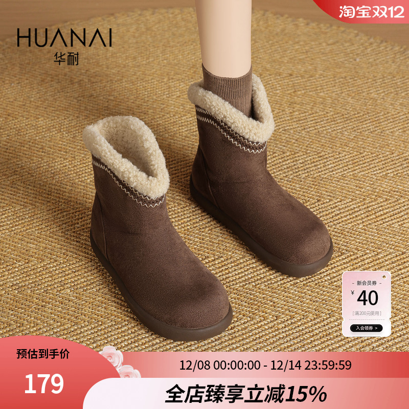 华耐雪地靴女款2025新款冬季厚底保暖加绒短靴毛毛棉鞋勃肯面包鞋