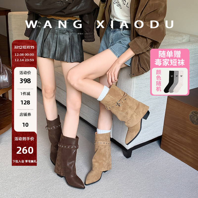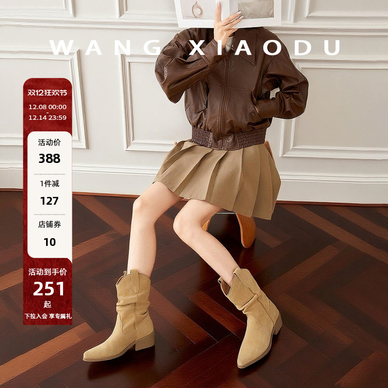 原创【王小毒】城市牧野●4.5cm增高显瘦美拉德堆堆靴女V西部短靴