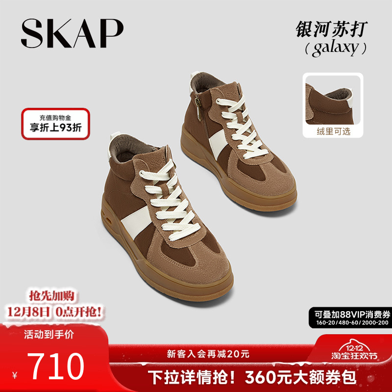 SKAP银河苏打圣伽步女鞋2025冬季新款厚底高帮女休闲靴短靴德训鞋
