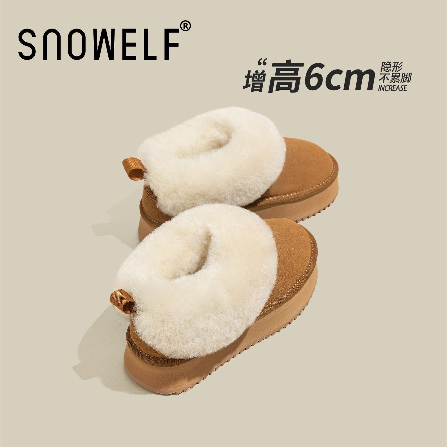 柒步森林牛反绒羊毛一体厚底雪地靴加绒毛毛棉拖鞋子女外穿冬新款