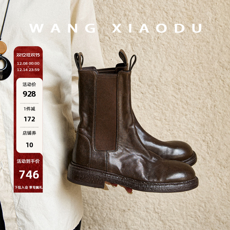 原创【王小毒】一树繁花●4cm厚底切尔西靴女水洗真皮短筒烟管靴