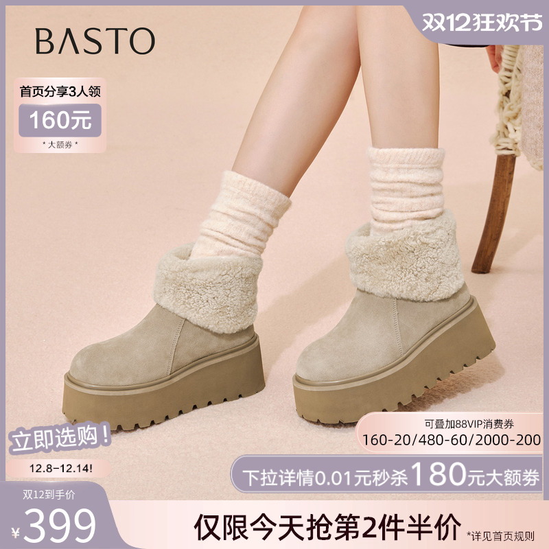 百思图2025冬季商场新款厚底雪地靴加绒保暖棉鞋女短靴L9528DD5