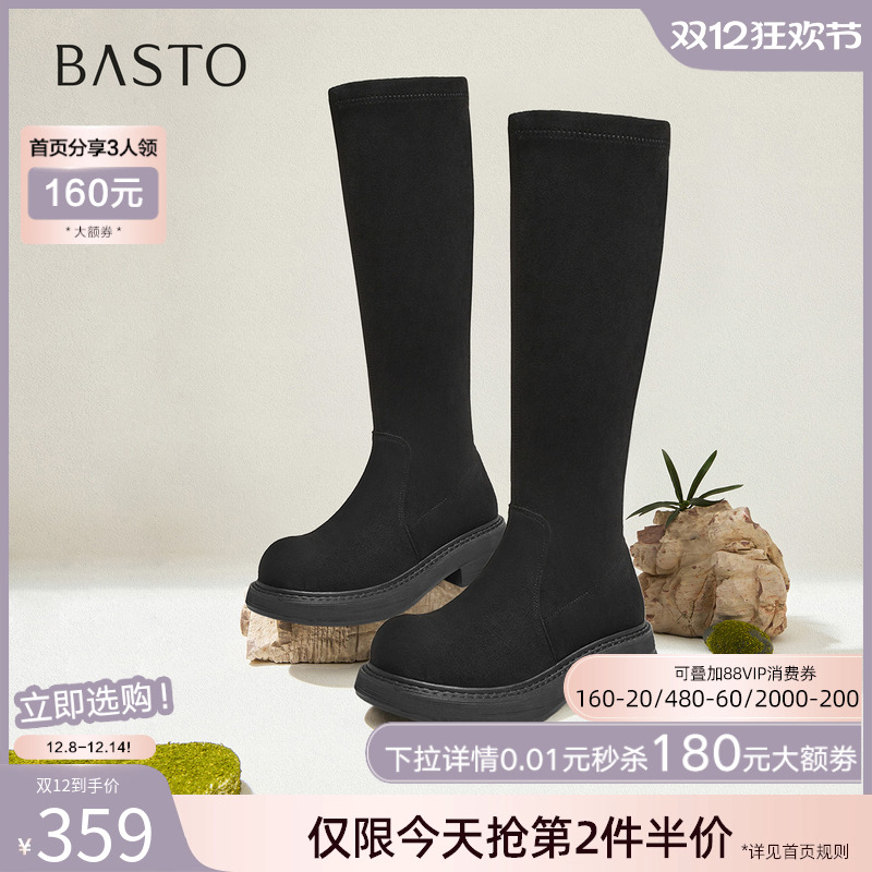 百思图2025冬季商场新款绒面弹力靴瘦瘦靴骑士靴女长靴B8111DG5