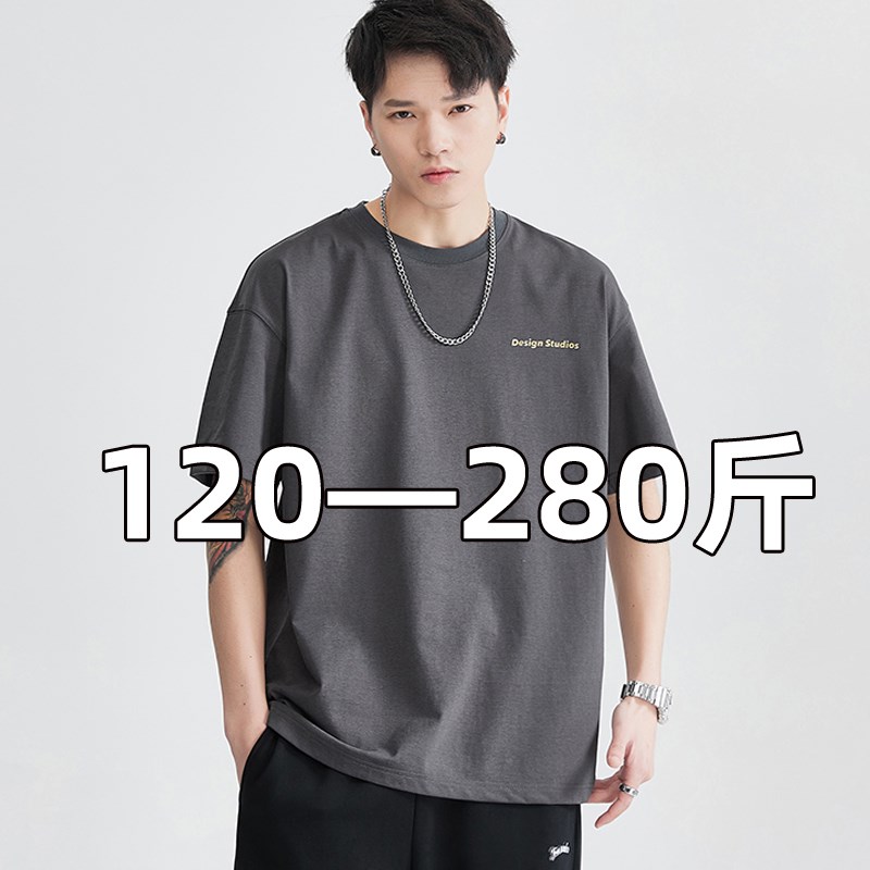 300斤大码短袖t恤男士新款纯棉重磅潮牌加肥加大学生宽松半袖上衣