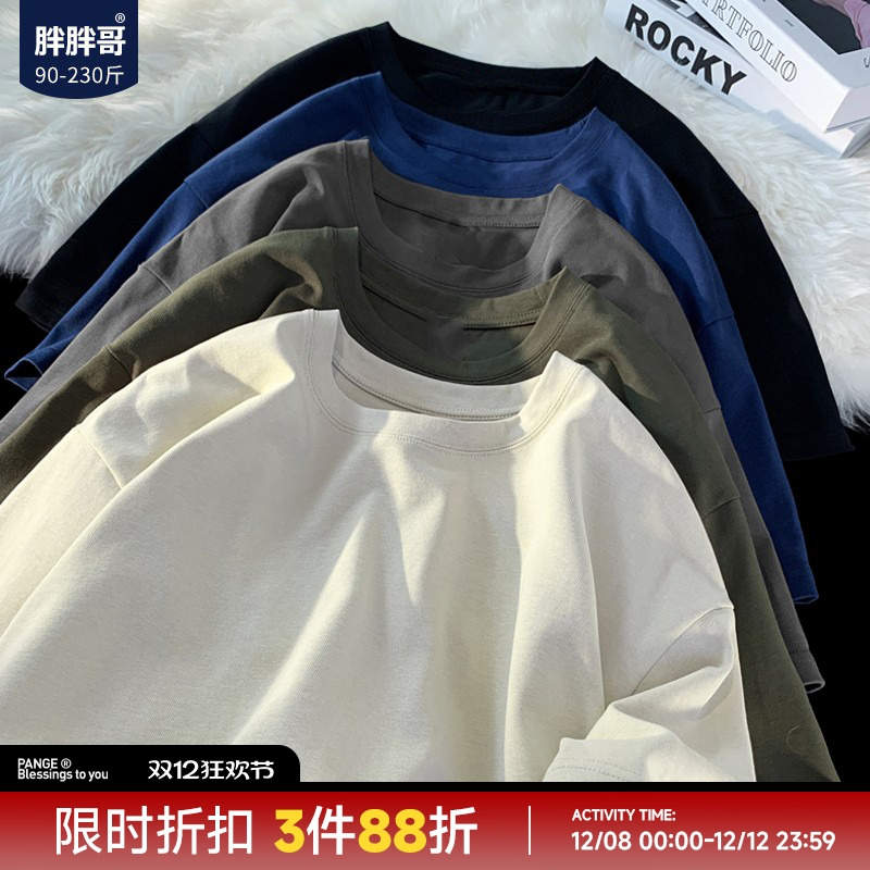 胖胖哥短袖T恤男款夏季潮牌高街大码圆领半袖潮流宽松纯色五分袖