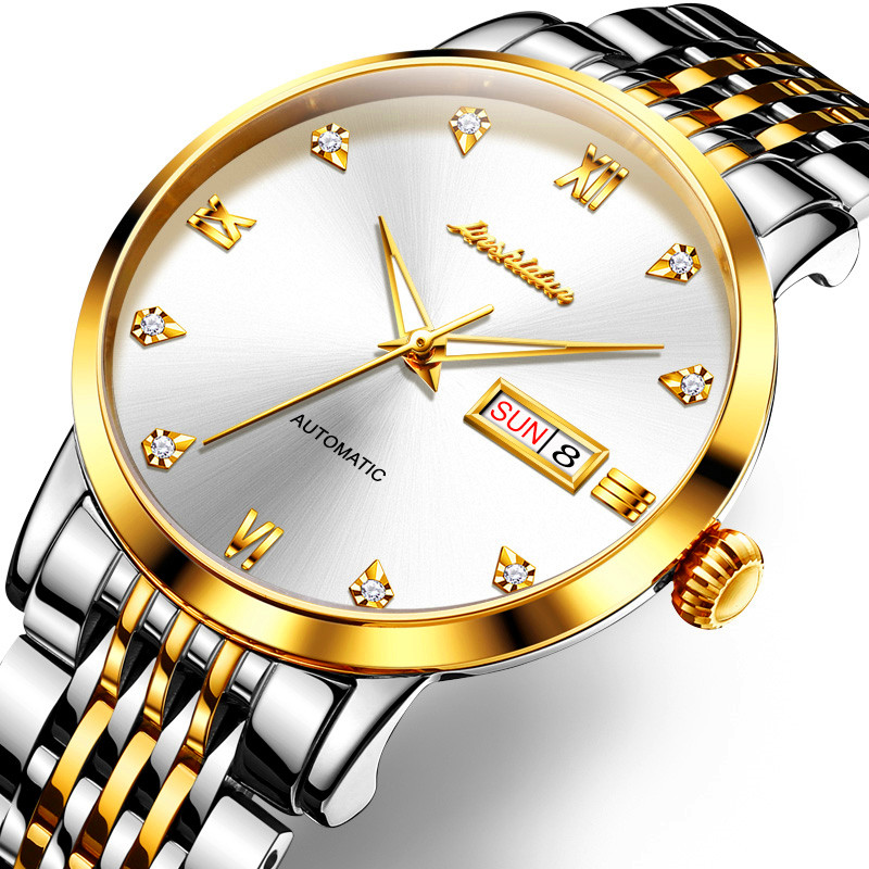金士顿金全自动夜光机械尚手表精士表水间男金钢轻奢时防土间白男