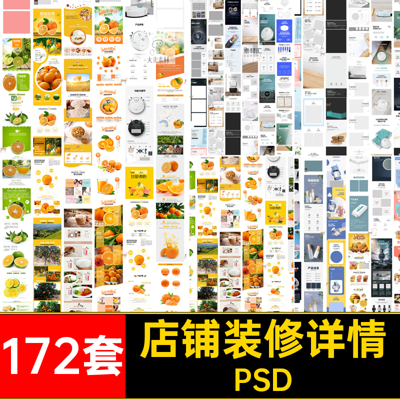 店铺装修详情产品PSD妆排版宝贝淘宝素材模板页设计172套美工电商