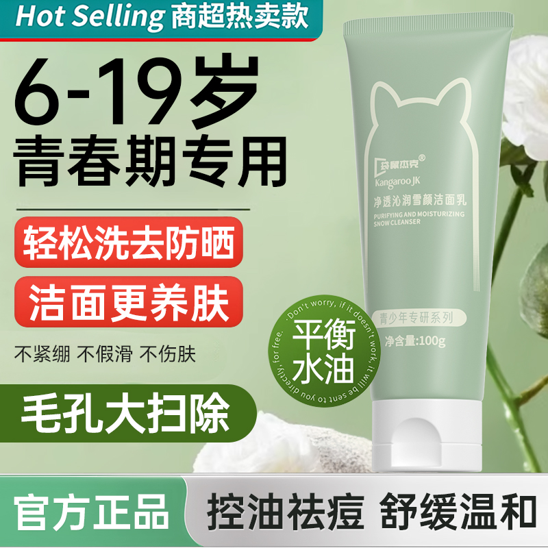 袋鼠妈妈青少年洗面奶青春期敏感肌控油祛痘洁面乳女孩男孩学生党