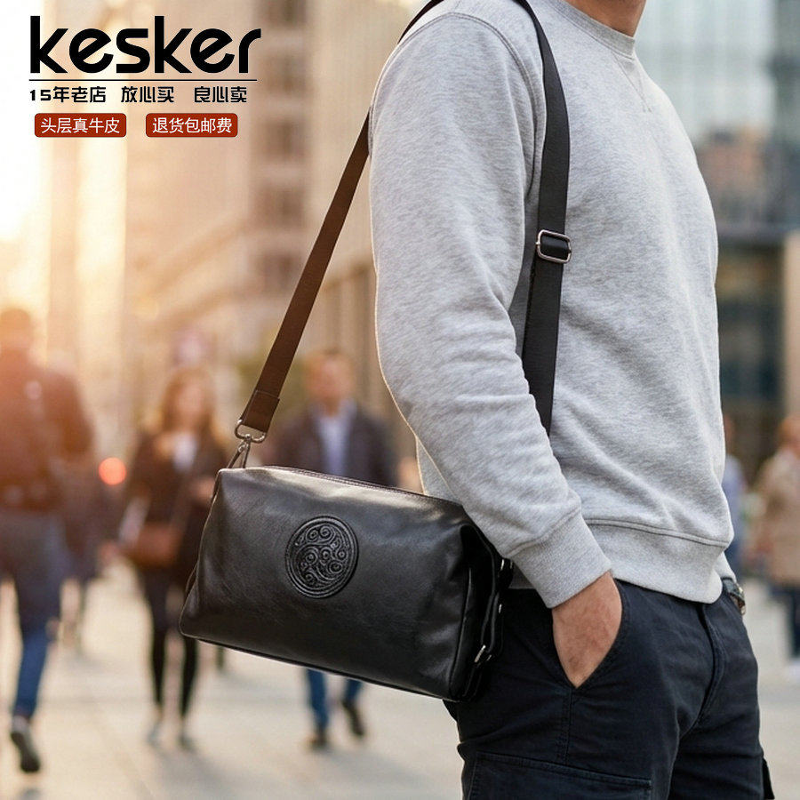 - 真皮 男包 斜挎包