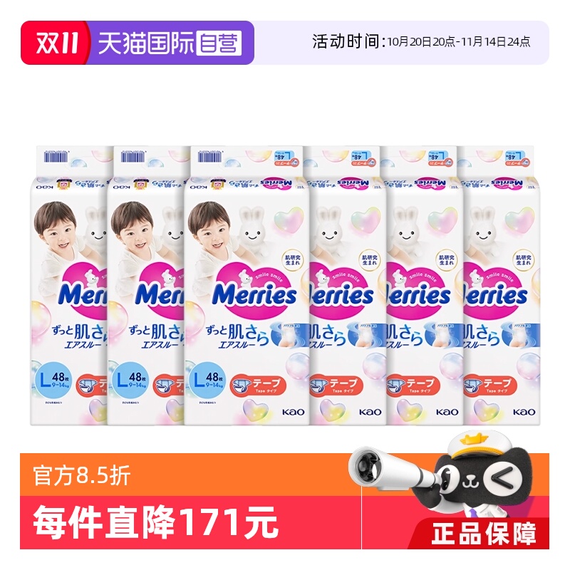 【自营】日本花王妙而舒Merries超薄透气婴儿纸尿裤尿不湿L48*6