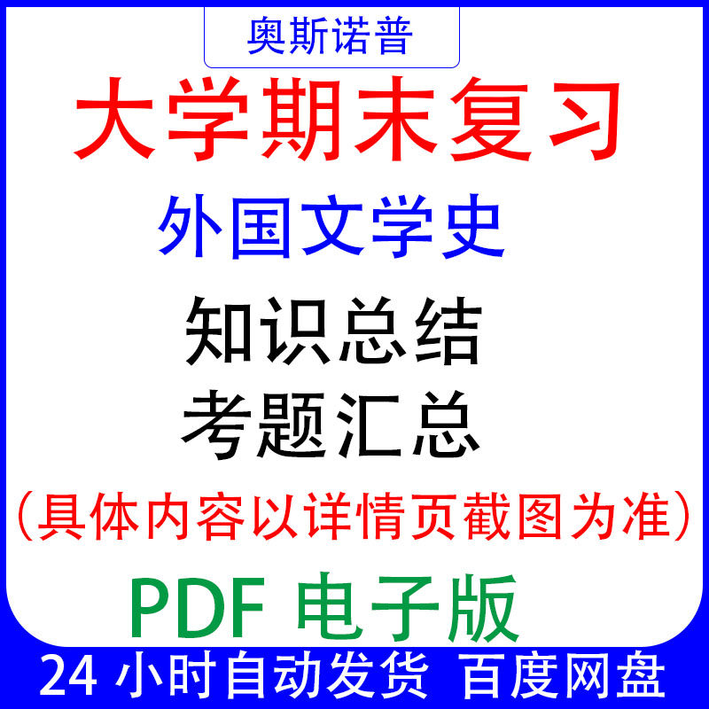 大学期末专业课复习备考知识点试题汇总外国文学史资料PDF电子