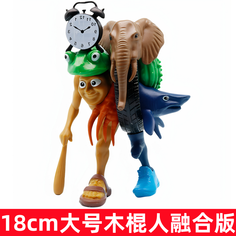 外国山海经玩具木棍人融合怪合体手办全套轮胎蛙鲨鱼人偶拼装正版