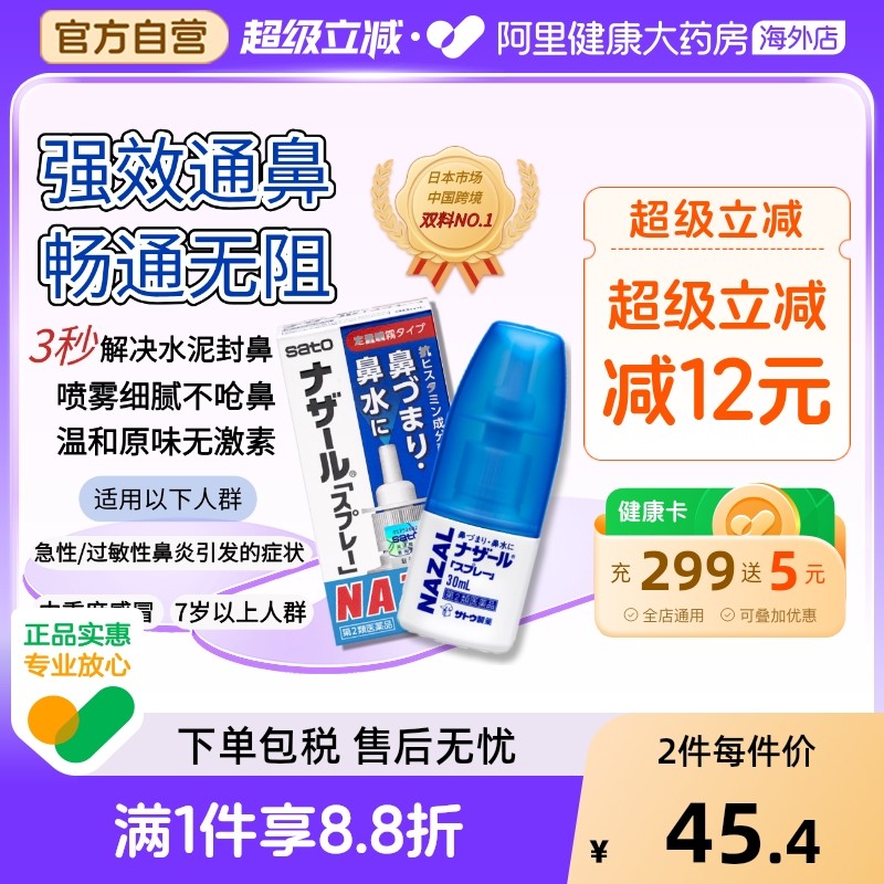 sato佐藤鼻炎喷雾日本进口鼻塞通鼻过敏性鼻炎温和无激素原装儿童