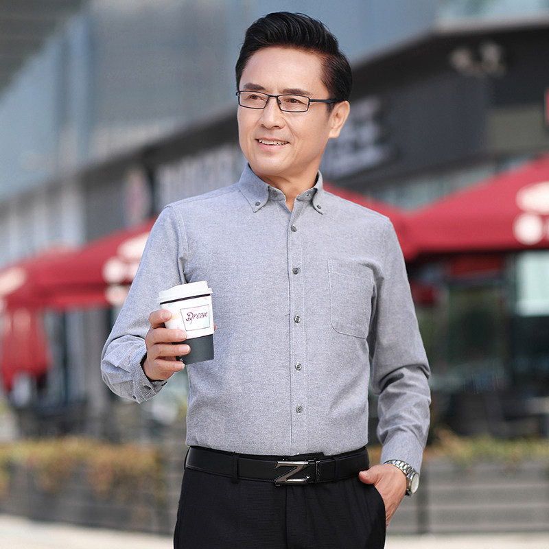 - 中年男纯棉长袖衬衣