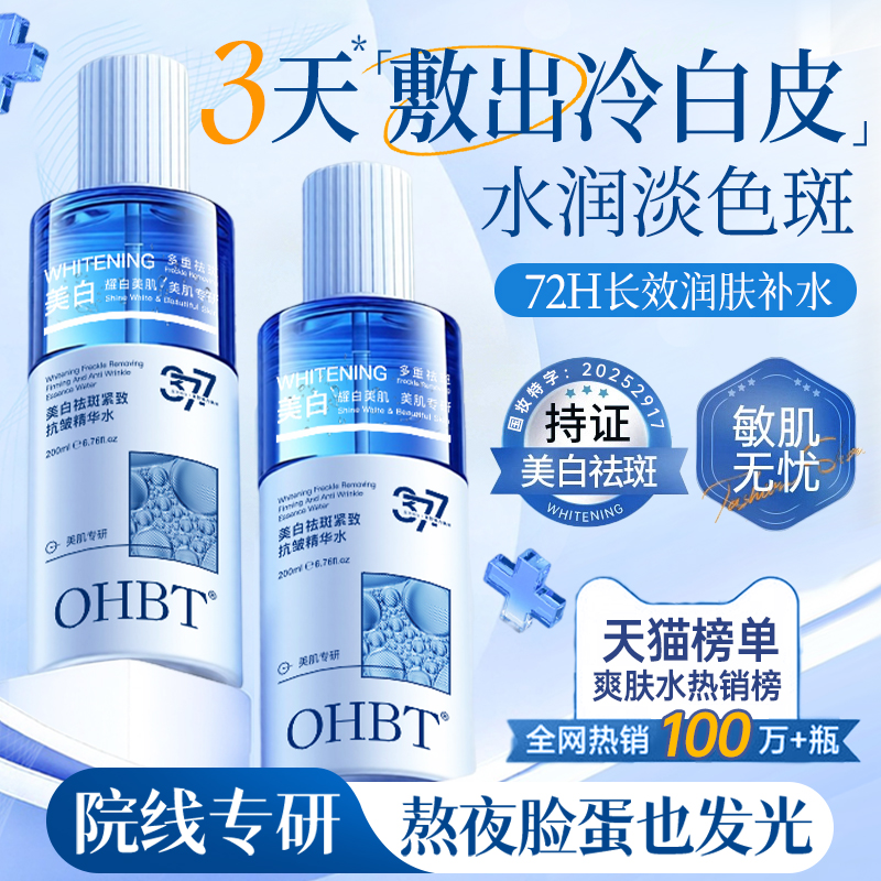 美白淡斑爽肤水补水保湿精华去黄提亮改善暗沉湿敷水乳化妆护肤女