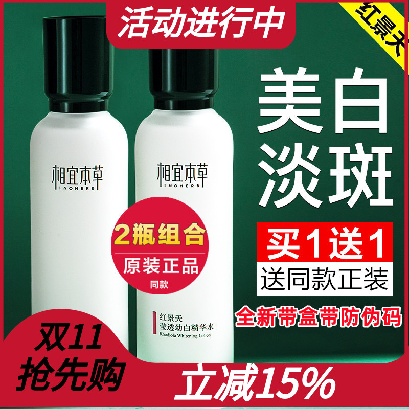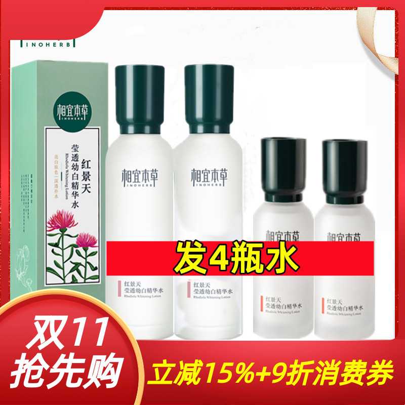 相宜本草爽肤水红景天莹透幼白精华水美白补水保湿套装官方正品女