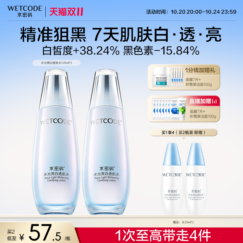 水密码滢亮皙白柔肤水爽肤水补水保湿美白肌肤提亮肤色护肤学生女