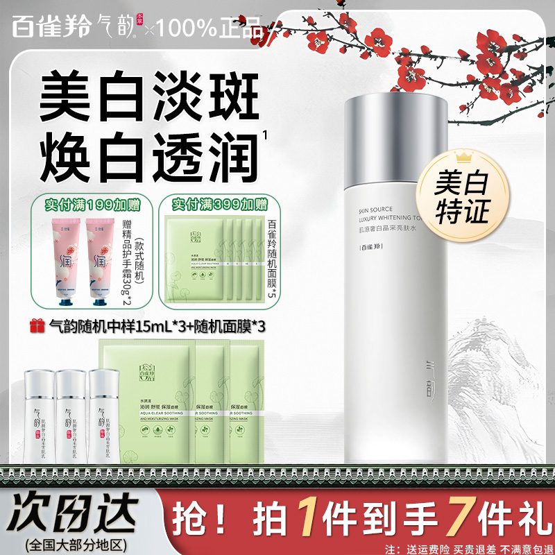百雀羚气韵奢白美白淡斑爽肤水女补水保湿水提亮肤色改善暗沉官方