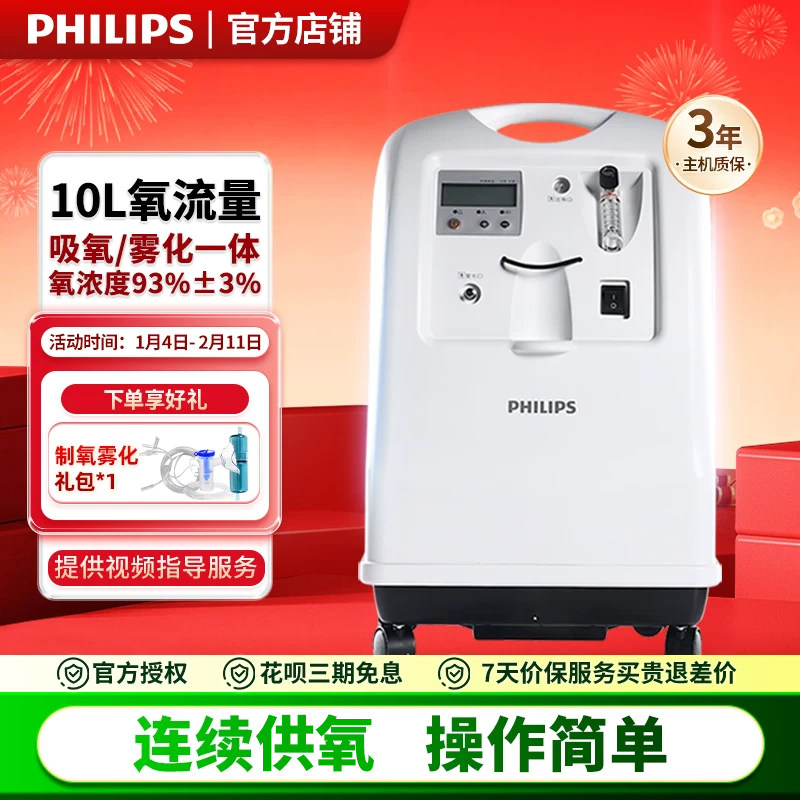 飞利浦PHILIPS医用10L制氧机家用孕妇吸氧机氧气机带雾化家庭老人