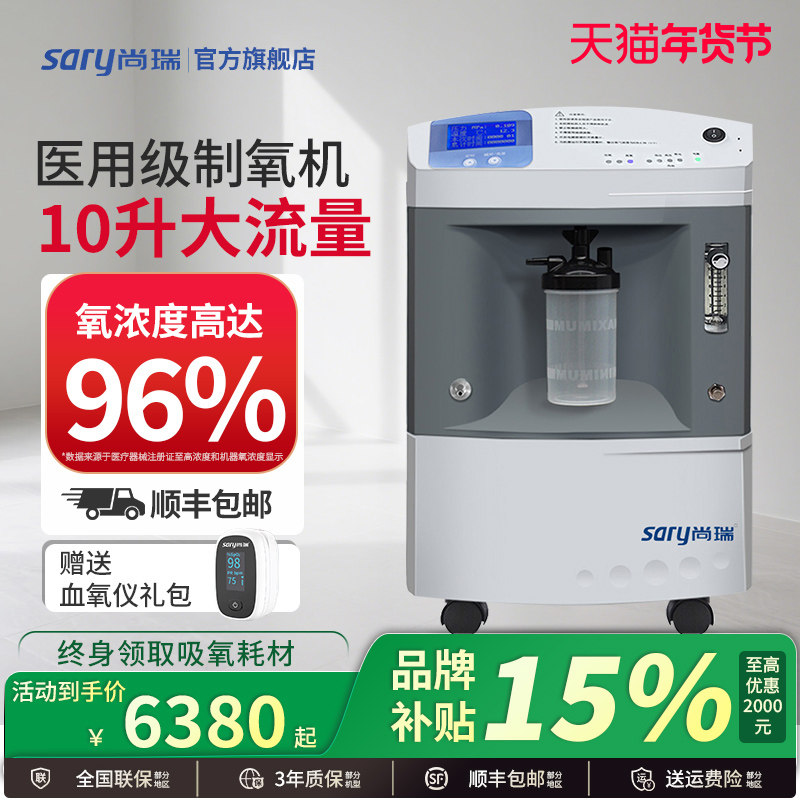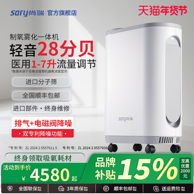 尚瑞医用制氧机5L升家用吸氧机家用吸氧老人用孕妇带雾化轻声运行